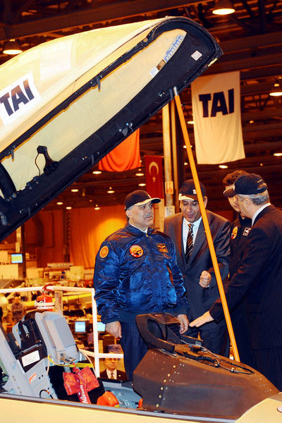 Cumhurbaşkanı Gül'ü girişte Milli Savunma Bakanı Vecdi Gönül, Savunma Sanayi Müsteşarı Murat Bayar, TSK Güçlendirme Vakfı Genel Müdürü Hayrettin Uzun, TAI Yönetim Kurulu Başkanı Mehmet Yalçınkaya, TAI Genel Müdürü Muharrem Dörtkaşlı karşıladı.