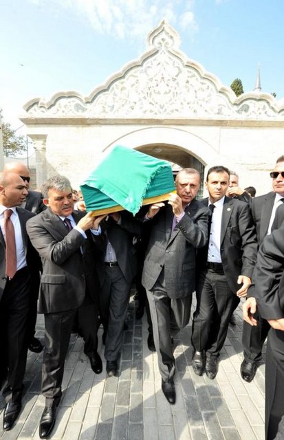 Fatih Camii'nde Başbakan Erdoğan, annesinin cenazesini omuzlayarak araçtan indirdi. Cenaze namazı sırasında ise helallik istendiğinde Başbakan kendini tutamayıp gözyaşlarına boğuldu.