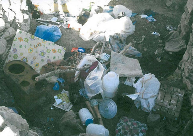 Yeşil alanın ortasında mazi branda ile kapatılmış küçük yayla evinin içinde değişik malzemeler elde edildiğini vurgulayan İdris Naim Şahin, "Uyku malzemeleri, yemek malzemeleri kap kaçak, yine evde ihtiyaç duyulan bütün malzemeler, yağlar, bidonlar. çokokremler var ama üzerlerindeki yazılar Türkçe değil ya Farsça ve Arapça tam belli olmuyor" diye konuştu.
