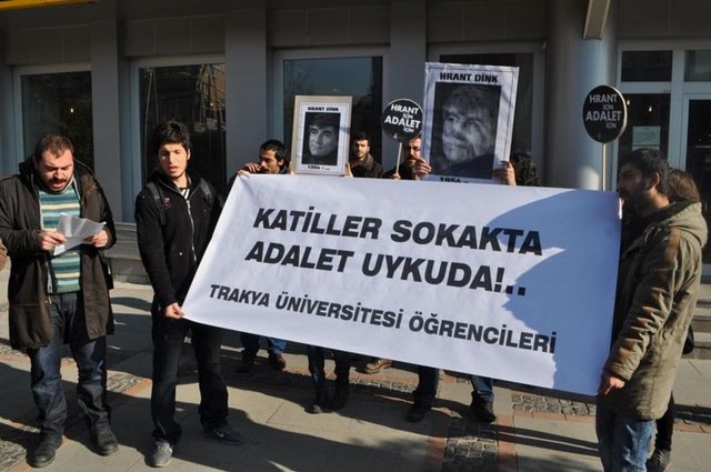 Taksim Meydanı'nda akşam saatlerinde toplanan ve üzerinde ''Hesabını Soracağız'' yazılı pankartlar taşıyan Hrant'ın Arkadaşları ''Hepimiz Ermeniyiz, Hepimiz Hrant'ız'', ''Adalet Halkların Eliyle Gelecek'' şeklinde yazılı dövizler taşıdı. ''Hesabını Soracağız'', ''Bu dava bitmedi, yeni başladı'' şeklinde sloganlar da atarak İstiklal Caddesi üzerinde yürüyüşe geçti. Sloganlar eşliğinde yürüyen grup Galasatasaray Lisesi önünde toplandı ve ardından burada basın açıklaması düzenlendi Burada açıklama yapan Sayat Tekin, ''Bizler, bu siyasi cinayetin şahidi nesiller olarak, bu olayın gerçek faillerini yargılayacak ve onlardan bunun hesabını mutlaka soracağız.Rakel daha ilk gün 'bir çocuktan katil yaratan karanlık' diye özetlemişti gerçek katili. O karanlık, o ırkçı, katliamcı kapitalist sistem çok uzun zamandır üzerimizde ve hala aynı pervasızlıkla cinayetler işlemeye devam ediyor. Her seferinde suçüstü yakalanıyor ve her seferinde aynı aymazlıkla suçunu inkar ediyor. Ama bizler, tüm katledilenlerin hesabını tek tek soracağız'' dedi. Hiçbir devlet görevlisinin yargılanmadığını ve davanın 5 yıl sürdüğüne dikkat çeken Tekin, ''Bugün Hrant Dink davası örtbas edilirken, diğer taraftan gazeteciler, insan hakları savunucuları, öğrenciler ve muhalifler ceza evlerini doldurmuş durumda. Ahmet Şık, Nedim Şener, Ragıp Zarakolu ve Büşra Ersanlı bunlardan sadece birkaçı'' diye konuştu. Soruşturmanın karanlık eller tarafından engellendiğini iddia eden Tekin sözlerini şöyle sürdürdü, ''Parasız eğitim isteyen öğrenciler, haber yapan gazeteciler, kitap yazan yazarlar hukuksuzca tutsak edilip, terör örgütü üyeliği ile yargılanırken, aynı mahkemeler Hrant'ın katledilmesinde, bir örgüt izi bulamadı."