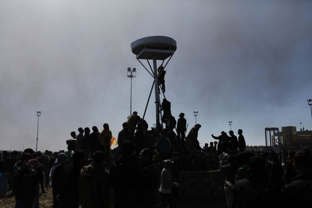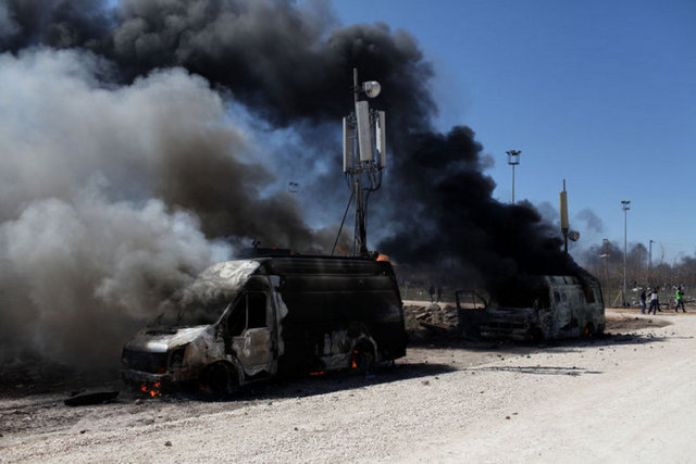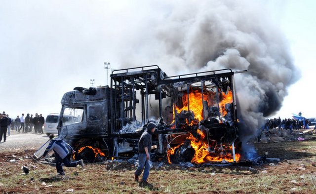 Bu arada nevruz alanına kentin değişik yerlerinden yaklaşık 50 bin kişi girdi. Nevruz alanında 9'u GSM operatörlerine ait seyyar baz istasyonu olmak üzere 10 araç ateşe verildi. Göstericiler nevruz alanına girmek için çeşitli yolları denerken, güzergahlarındaki bir market zincirinin şubelerini yağmalayarak molotoflarla ateşe verirken, bazı market şubelerini ise taşladılar. Polis zırhlı araçlarla nevruz kutlamalarının 21 Mart'ta yapılacağı anonsu yaptı. Köy yolundan nevruz alanına çıkan bir araçta yapılan aramada ise bir pompalı tüfek ele geçirildi.