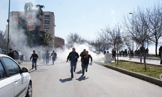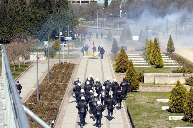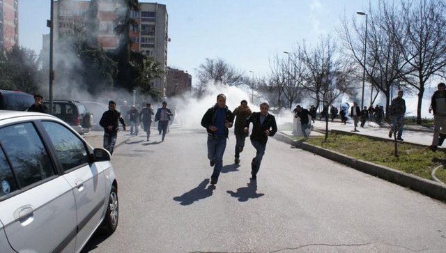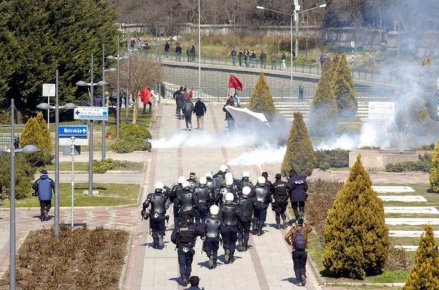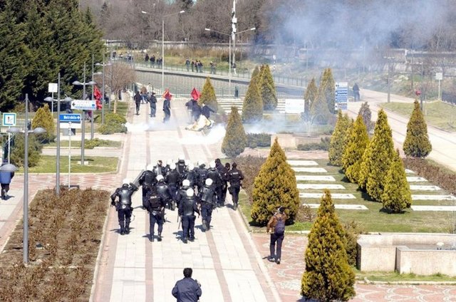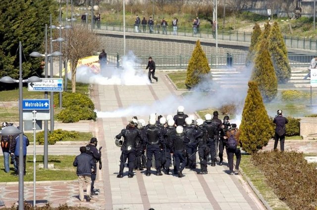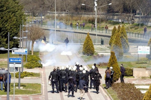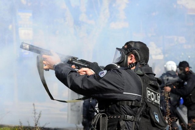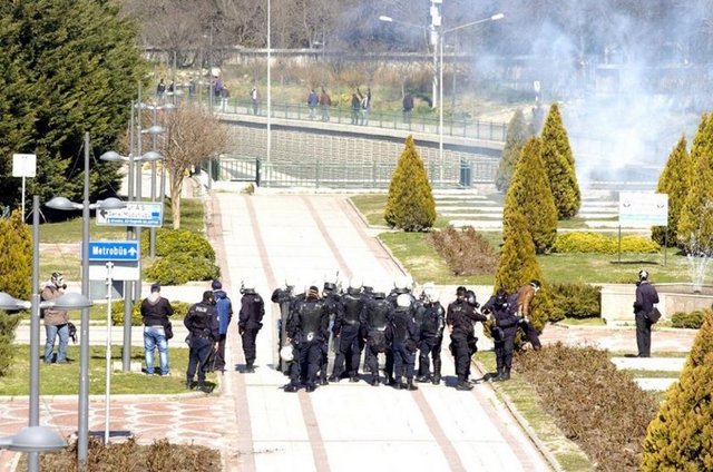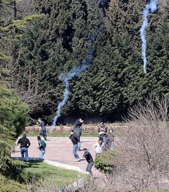 Çevik kuvvet polisi gruba gaz bombalarıyla müdahale etti.