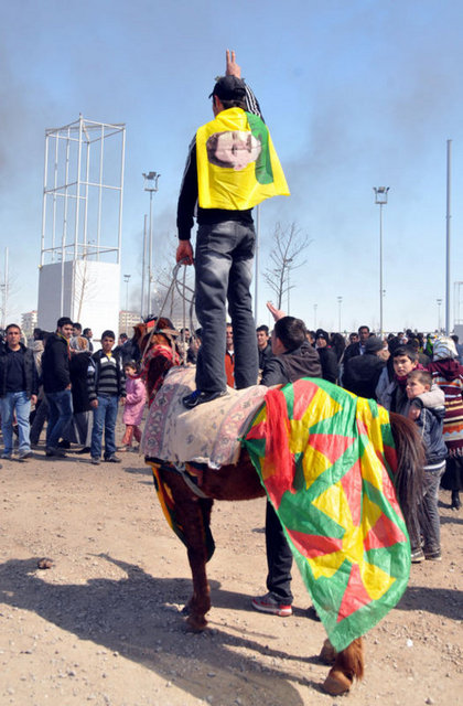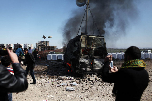 Ayrıca nevruz alanına gitmeye çalışan bir araçta pompalı tüfek bulundu, 9'u GSM şirketlerine ait seyyar baz istasyonu olmak üzere 10 araç yakıldı. Polis kordonunu geçen yaklaşık 50 bin kişi nevruz alanına girerken, Demirtaş parti otobüsü üzerinden kalabalığa konuşma yaptı. Çıkan olaylarda 1'i polis 3 kişi yaralanırken, çok sayıda kişi gözaltına alındı.