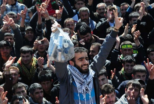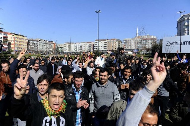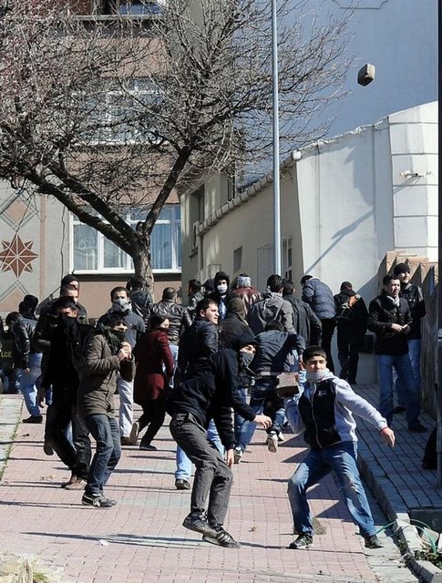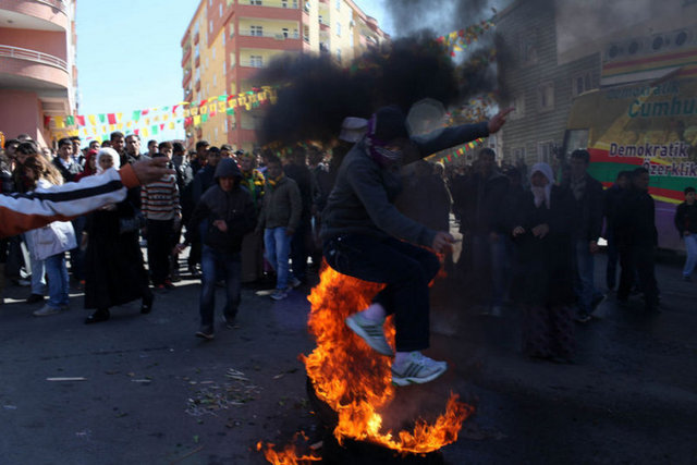 Meşrutiyet Caddesi'nde bulunan BDP'li, TKP'li ve Halkevleri'ne mensup kalabalık, burada ateş yakarak uzun bir süre üzerinden atladı.
