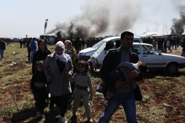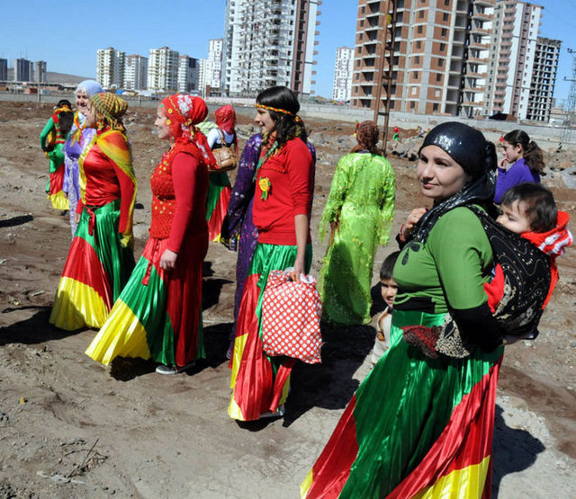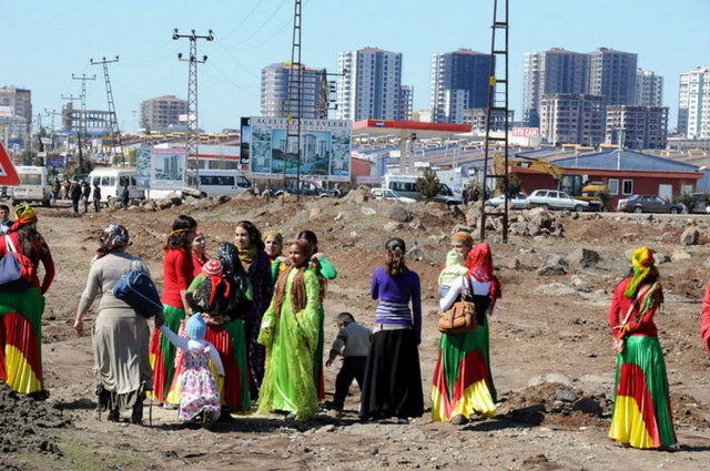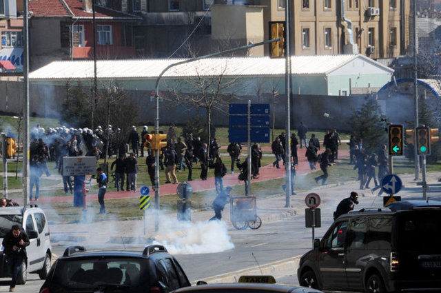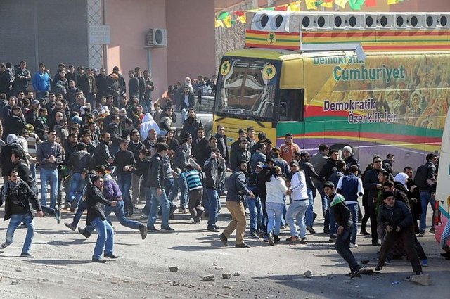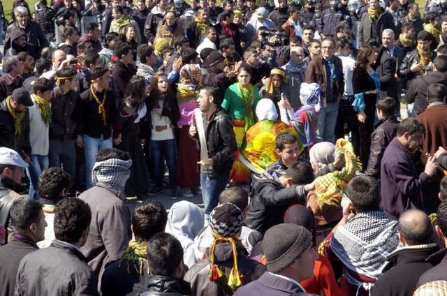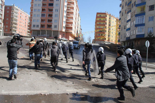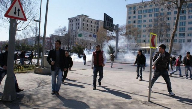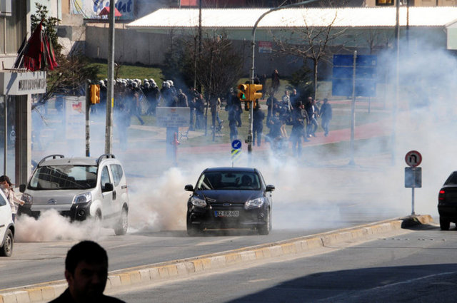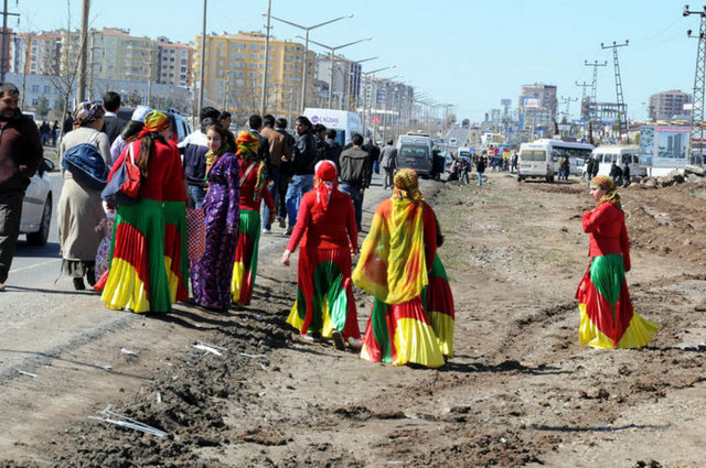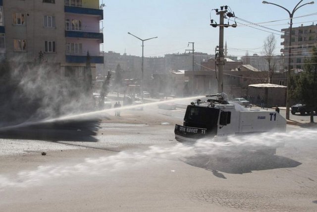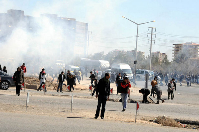 Kentin değişik yerlerinden nevruz alanına gitmek isteyenlere ise polis müdahale etti. 3 helikopterle polis havadan yerdeki polisleri ikaz edip yönlendirirken, kalabalık gruplara helikopterlerden göz yaşartıcı gaz atılması dikkat çekti. Bağlar Sento Caddesi'nde göstericilerin dağılması için polis havaya ateş de açtı.