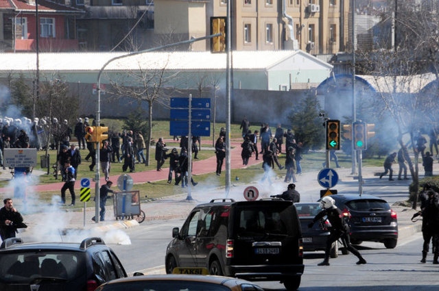 Kızılay'da değişik noktalarda toplanan BDP, Halkevleri ve TKP gibi siyasi parti ve sivil toplum örgütleri Sakarya Caddesi'ne yürümek istedi. Meşrutiyet Caddesi'nde toplanan BDP'li grubun önünü polis kesince, uzun bir süre BDP Milletvekili Ertuğrul Kürkçü ve polisler arasında pazarlık yapıldı. Polis, Sakarya Caddesi'ne gitmek isteyen gruba izin vermezken, daha sonra Halkevleri ve bazı TKP'li gruplar sloganlar atarak Meşrutiyet Caddesi'ne geldi. Burada polisin izin vermesi üzerine BDP'li grupla bir araya gelerek sloganlar atan grup, uzun bir süre polisin aldığı geniş güvenlik çemberi içerisinde bekledi. Daha sonra tekrar devreye giren BDP milletvekili Ertuğrul Kürkçü, Sakarya Caddesi'nde bulunan diğer grubu da Meşrutiyet Caddesi'ne getirmek istediğini belirtti. Emniyet yetkililerinin izin vermesi üzerine Sakarya Caddesi'nde bulunan grup da Meşrutiyet Caddesi'ne gelerek buradaki topluluğa katıldı.