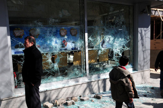 POLİS ARACINI VE DERSHANEYİ TAŞLADILAR