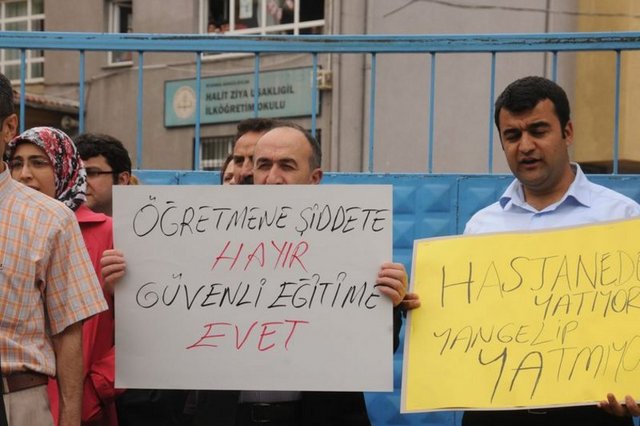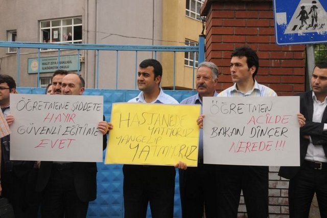 Bahçelievler'deki Halit Ziya Uşaklıgil İlköğretim Okulu Beden Eğitim öğretmeni Nejdet Korkmaz, kot pantolonuyla derse girmesine izin vermeyerek üzerini değiştirmesi için evine gönderdiği 8'nci sınıf öğrencisi N.U.'nun dayısı tarafından muştalı saldırıya uğradı. Yüzünden yaralanan Korkmaz, hastaneye kaldırılırken saldırıyı gerçekleştiren dayı gözaltına alındı. Korkmaz'ın meslektaşları dün okul önünde öğretmene şiddeti protesto etti.