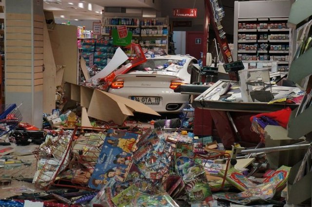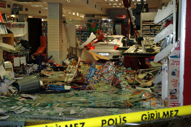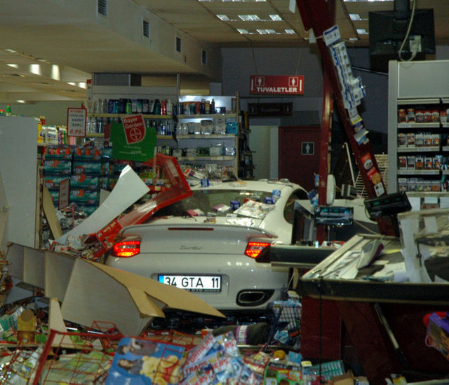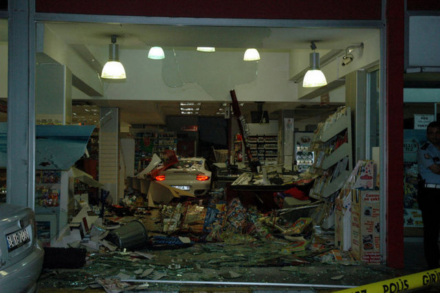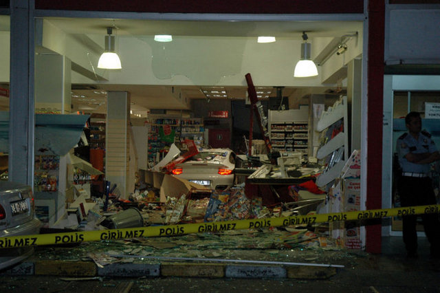 Markete girmeden çarptığı otomobilin sürücüsü ise; “ Süratini bilemeyeceğim ama buradan geldi direk içeri girdi. Bende bir şey yok Allah’a şükür. Pompacıya çarptı işte. Şoka girmişti” dedi.