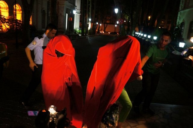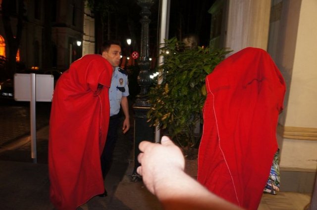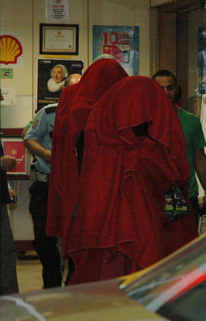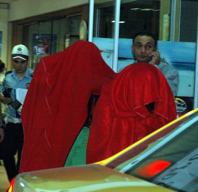 S. A. ile B. A. tanınmamak için yüzlerini masa örtüsüyle kapattı. Polis ekipleri basın mensuplarının görüntü almasını engellemek için önce şahısları marketin arka bölümüne götürdü ardından çağırdığı taksiyi güvenlik şeridinin içine aldı.