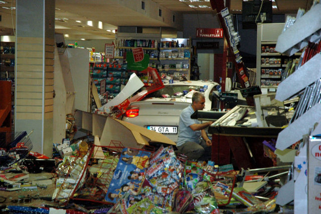 Cumartesi geceyarısı gerçekleşen kazanın kamera görüntüleri de ortaya çıktı. Görüntülerde panikleyen şoförün fren yerine gaza basınca nasıl markete girdiği görülüyor.