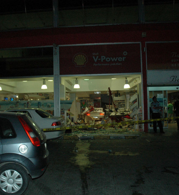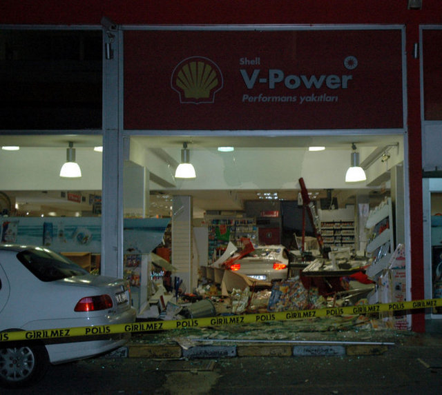 Benzin istasyonunda çalışan pompacı Muhammet Cimşir, kazayı hafif yaralı olarak atlattı. Markette maddi hasar meydana geldi.
