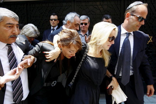 Sinegogtaki töreni Hahambaşı İshak Haleva yönetirken, cenaze töreni sırasında ailenin birbirlerine sarılarak destek vermeye çalıştıkları gözlendi.