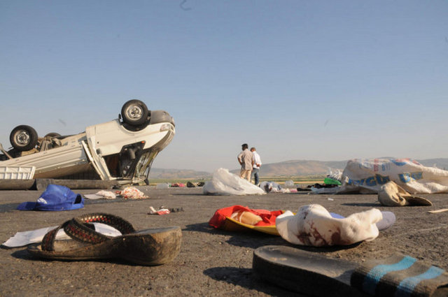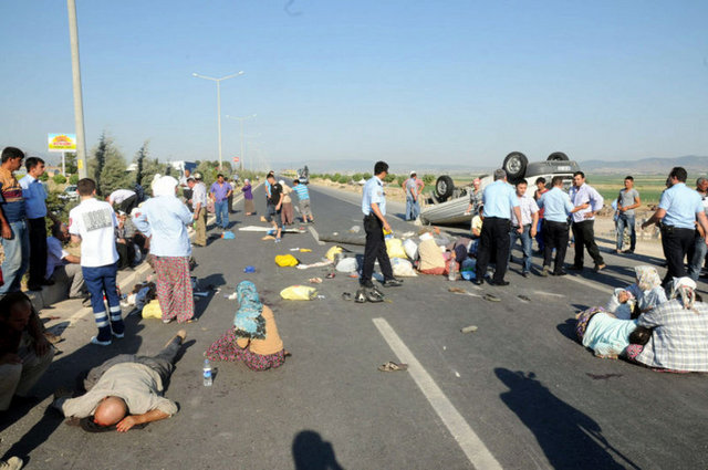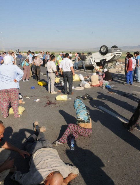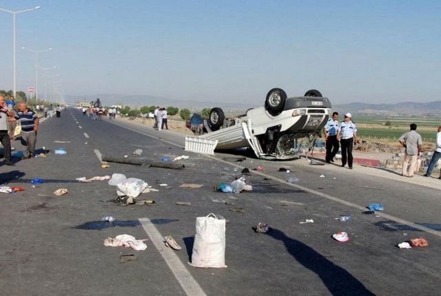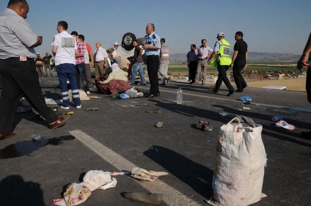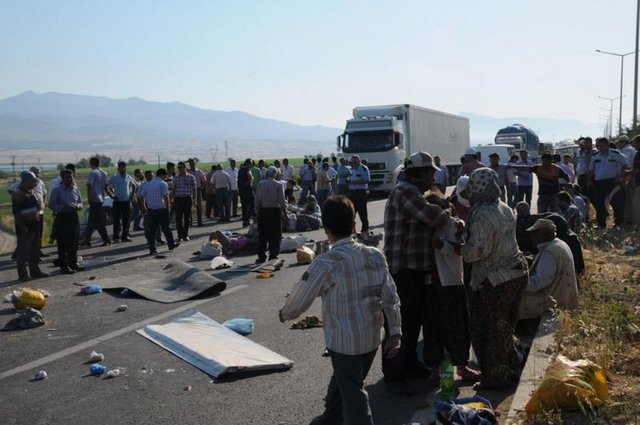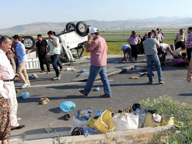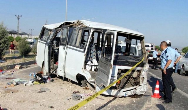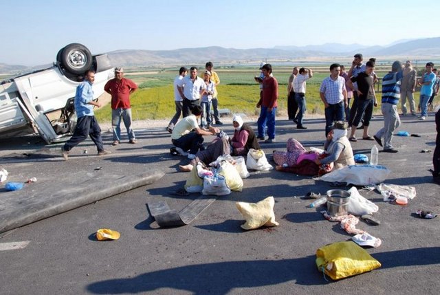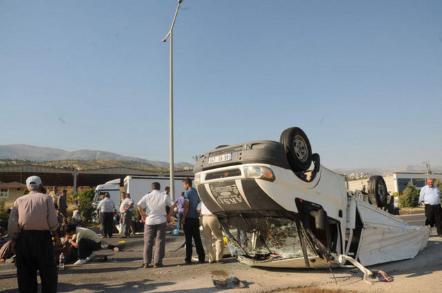 Kaza, bugün akşam saatlerinde Kahramanmaraş-Kayseri karayolunun 3. kilometresinde meydana geldi. Sürücüsünün kimliği belirlenemeyen yolcu minibüsü, ön lastiğinin patlaması sonucu kontrolden çıkarak elektrik direğine çarparak karşı şeride geçti. Bu sırada tarım işçilerini taşıyan kamyonetin sürücüsü de kaza yapan minibüse çarpmamak için ani manevra yapınca araç kontrolden çıkıp takla attı.