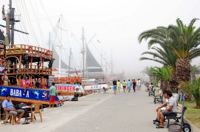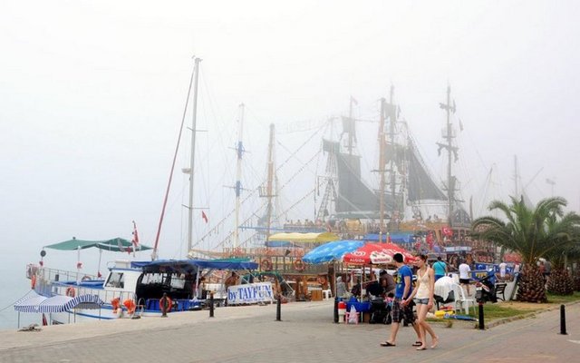 Hava sıcaklığının 32 dereceye ulaştığı Alanya'da nem oranı ise yüzde 85 olarak ölçüldü. Denizdeki buharlaşmanın da etkisiyle sabah saatlerinde oluşan sis, tarihi Alanya Kalesi'nin bulunduğu yarımadayı ve doğu sahilini kapladı. Denizden 250 metre yükseklikteki tarihi kale, sis nedeniyle bulutların üzerinde gibi görüntü oluşturdu. Görüş mesafesinin azalması nedeniyle tur tekneleri yaklaşık 1 saat iskeleden çıkamadı, plajlar ise boşaldı. Alanya Meteoroloji Müdürü İbrahim Uysal, ilçe merkezinde fazla karşılaşılmayan sis bulutlarına yüksek nem oranının neden olduğunu belirtti.
