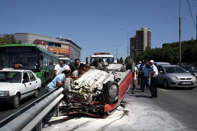 Kaza bugün saat 15.30 sıralarında D-100 Karayolu Göztepe mevkiinde meydana geldi. Bostancı yönünden Kadıköy yönüne giden Aziz İstanbullu, aşırı hız ve dikkatsizlik nedeniyle kullandığı 06 TEN 84 plakalı otomobilin direksiyon hakimiyetini kaybederek beton bariyere çarptı. Çarpmanın etkisiyle savrulan otomobil bir süre sürüklendikten sonra takla attı. Sürüklenmeye devam eden otomobil yol kenarındaki demir bariyerlere çarparak durabildi.