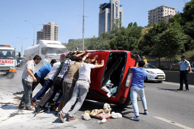 Yaralı sürücü İstanbullu, vatandaşlar tarafından yolun kenarına çekildi. Vatandaşlar, ambulans gelene kadar kafasından ve sağ bacağından yaralanan Aziz İstanbullu’nun yanından ayrılmadı. Yaralı sürücü ambulansla kaldırıldığı Göztepe Eğitim ve Araştırma Hastanesi’nde tedavi altına alındı.