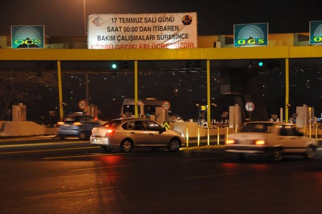 Boğaziçi ve Fatih Sultan Mehmet Köprüleri'nden trafik yığılmalarına son vermek için onarım bitene kadar sürecek ücretsiz geçiş, gece yarısı saatler 24.00'ü gösterdiğinde başladı. Köprü yoluna giren sürücüler, saatler 23.55'i gösterdiğinde ücretsiz geçişten yararlanmak için 10 kilometre hızla seyredince araç kuyruğu oluştu. Birçok sürücü de araçlarını yolun sağına çekerek saatin dolmasını bekledi. Ücretsiz geçiş yazısı OGS gişelerinin üzerine bir pankartla asıldı. Ayrıca görevliler de sürücüleri uyararak geçişin ücretsiz olduğunu bildirdi. Ücretsiz geçişten haberi olmayan bazı sürücüler, "Bu kamera şakası. Ben ceza yemem" diyerek KGS kartını makineye uyarı yazılarına rağmen sokmaya çalıştı. Saat 00.30'da birçok sürücünün OGS yerine KGS'ye geçmek için gişeler önünde manevra yapması şaşkınlıkla karşılandı.