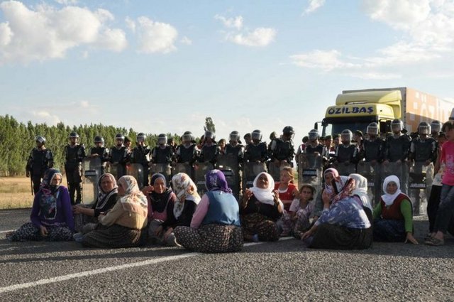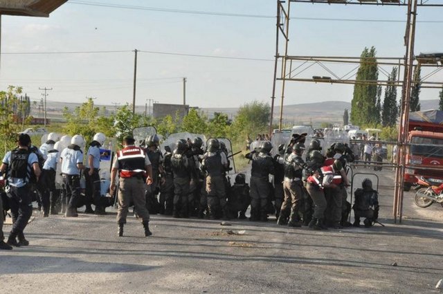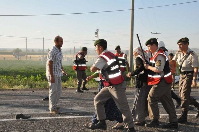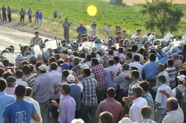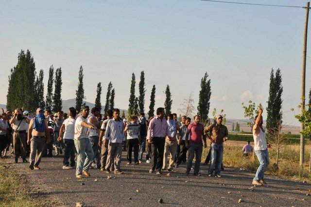 Saat 12.00'da başlayan 500 kişilik yol kesme eyleminde 6 saat sürdürdükten sonra jandarma ve polislerden oluşan yaklaşık 80 kişilik ekipler biber gazı ve havaya 5-6 el ateş ederek köylülere müdahale etti. Öfkeli köylüler jandarma ve polise taş ve sopalarla saldırırken 4 asker ve 1 polis yaralandı. Jandarmanın ve polisin biber gazını kullanmasıyla çevrede bulunan patates tarlalarına dağılan köylüler buradan da güvenlik güçlerine taş attılar.