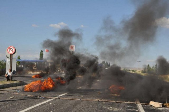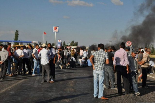 Saat 12.00'da Edikli, Gölcük, Orhanlı, Çarıklı, Alay, Karaltı, Konaklı ve Höyük kasabası sakinlerinin oluşturduğu 500 kişilik vatandaş Niğde-Kayseri yolunu kapatarak lastik yaktılar.