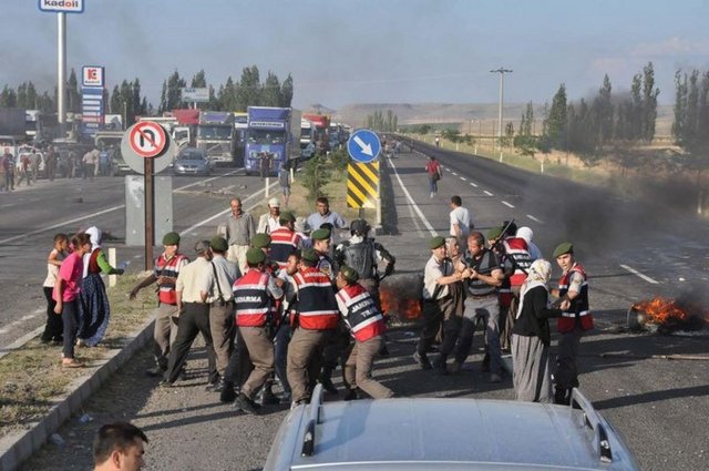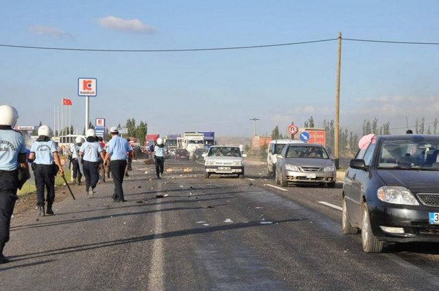 Niğde'de 6 köy sakinleri toplanarak Niğde-Kayseri karayolunu 6 saat trafiğe kapattı. Çıkan olaylarda 4 asker ve 1 polis yaralandı