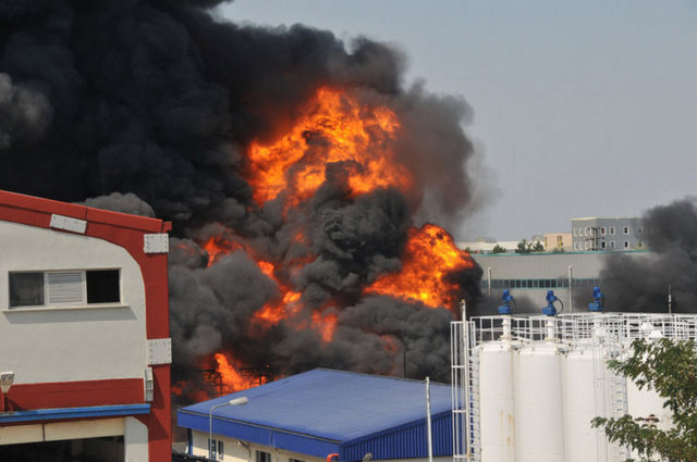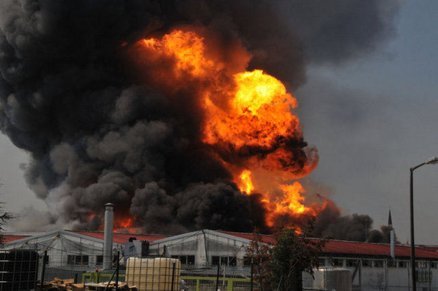 Kaya Boya Fabrikası'nda dün saat 10.45 sıralarında henüz belirlenemeyen nedenle yangın çıktı. Yangın, boya imalatında kullanılan malzemelerin tutuşmasıyla büyürken, olay yerine OSB, Tuzla, Dudullu, Orhanlı, Kartal, Sultanbeyli, Kurtköy, Ümraniye, Başakşehir, Bakırköy, Kadıköy, Seyrantepe, Şişli, Gaziosmanpaşa, Beşiktaş, Maltepe, Fatih gruplarından çok sayıda itfaiye ekibi sevk edildi. İtfaiye ekiplerinin yoğun çalışmasına rağmen nitro, selüloz ve tiner tanklarının bulunduğu fabrikadaki art arda patlamalar meydana geldi. BUnun üzerine alevler metrelerce yüksekliğe ulaştı ve dumanlar diğer ilçelerden de görüldü. Patlamaların etkisiyle oluşan basınç nedeniyle, çevredeki bazı rögar kapakları havaya fırlarken, alevler fabrikanın üstünden ve yakınlarından geçen yüksek gerilim hatlarını kopardı. Bölge emniyet güçleri tarafından abluka altına alındı ve alevlerin sıçrama ihtimaline karşı çevredeki fabrikalar boşaltıldı. Rüzgarında etkisiyle kontrol altına alınmasında güçlük çekilen alevlere Gebze ve Kocaeli itfaiyelerinden gelen takviye ekipler ile Koca Yusuf, 6*6*6 Afet müdahale, Ahtapot, Yengeç tabir edilen yangın söndürme araçlarıyla da müdahale edildi. Söndürme çalışmalarına, ayrıca İstanbul Bölge Müdürlüğü'ne ait bir uçak köpük sıkarak, bir helikopter de su bırakarak katıldı. Yangın saat 16. 30 sıralarında kontrol altına alınabildi. Yangının ilk çıkışı sırasındaki yüzlerinde yanık oluşan işçiler İsmet Ünal ve Öztürk Balcı ise tedavi altına alınırken rüzgarın etkisiyle büyüyen alevlerden nasibini alan iki fabrikada da maddi hasar oluştu.