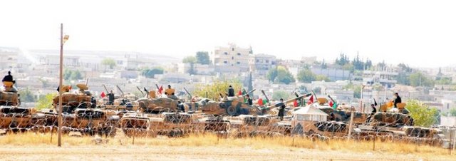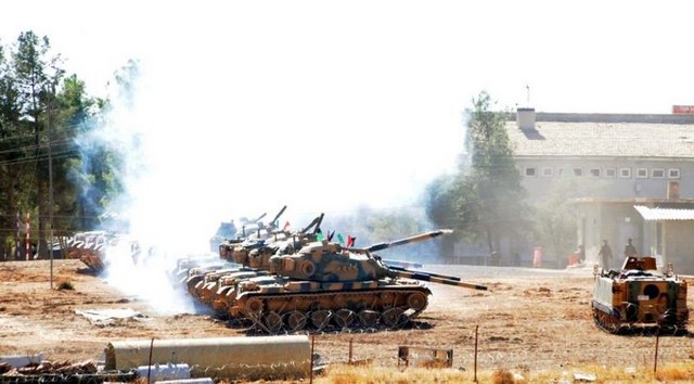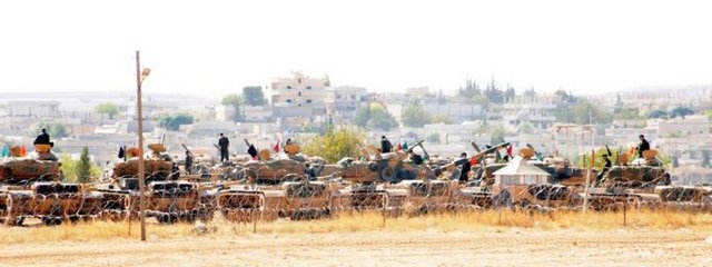 TBMM'de tezkerenin kabul edilmesi ile TSK, çok sayıda tank ve obüs topunu Suriye sınırına kaydırdı. Esad rejimi tarafından PYD'nin kontrolüne bırakılan Kobani kentine yaklaşık 200 metre mesafedeki sınırın sıfır noktasında bulunan Mürşitpınar Tabur Komutanlığı'na 60 tank ve 10 obüs topu yerleştirildi.