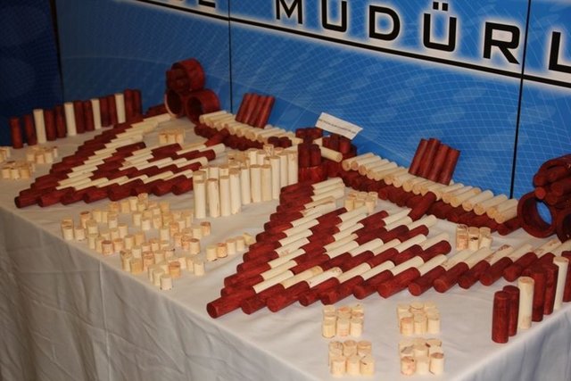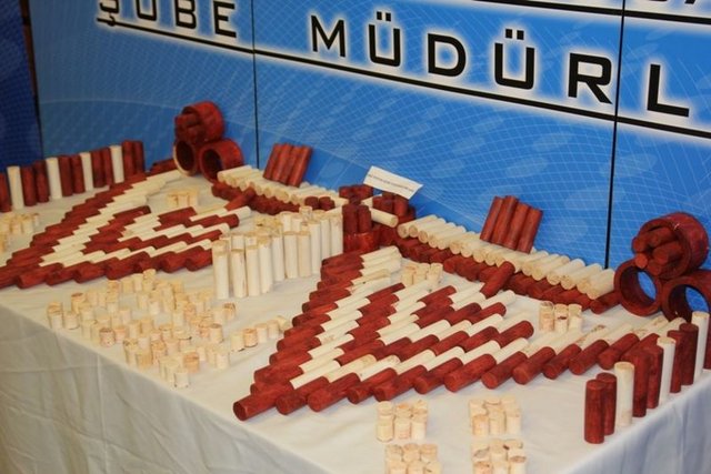 Operasyonda 1 kişi gözaltına alınırken, gül ağacı olarak beyan edilen fildişlerinin ağaç şeklinde kesilerek beyaz ve kahverengi renklerine boyandığı tespit edildi.
