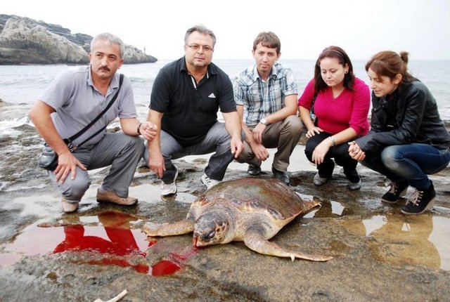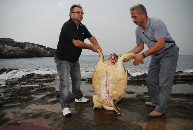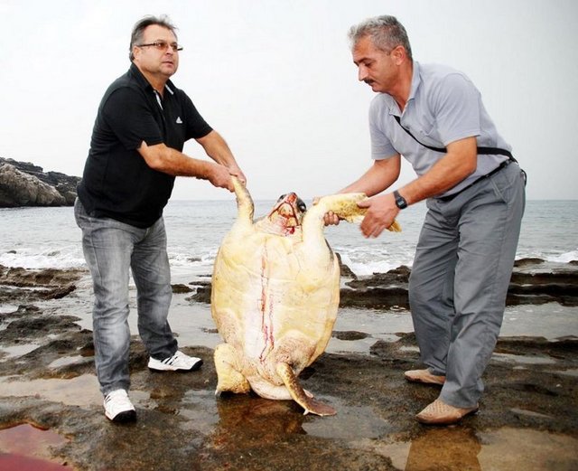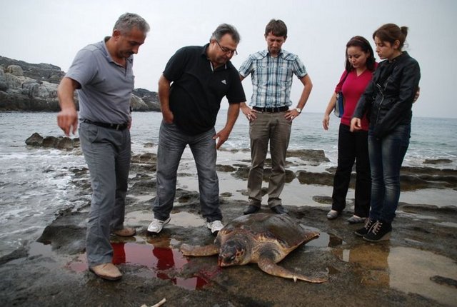 Koru Plajı'nda doğal havuzların bulunduğu bölgede, sabah saatlerinde amatör balıkçılar denizde caretta caretta leşi buldu. Kıyıya çıkarılan 'caretta caretta'nın sırtında bir parmak genişliğinde mermi deliği olduğu belirlendi. Tesadüfen olay yerinde bulunan Veteriner Hekim Osman Arslan, 'caretta caretta'nın birkaç gün önce ölmüş olabileceğini söyledi. 'Caretta caretta'nın silahla yaralandığını ve bu nedenle öldüğünü belirten Arslan, Üç yaşında olduğunu tahmin ediyorum. Büyük ihtimalle silahla ateş açılmış. Eğer zıpkın olsaydı zıpkını çıkartmaları mümkün olmazdı dedi. Boyu 1 metre ve 40 kilo ağırlığındaki deniz kaplumbağasının yumurtlama mevsiminde bulunduğunu anlatan Arslan, kaplumbağanın muhtemelen yumurtlamak için sahile geldiğini söyledi.