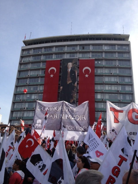 Bayrak açan bir kişi de polisin tekmesinden nasibini aldı. Tam bu anlarda yaşanan arbede sırasında görüntülere yansıyan bir karede, polisin tekmelerinin hedefinin Türk Bayrağı açan kişi olduğu görülüyor.