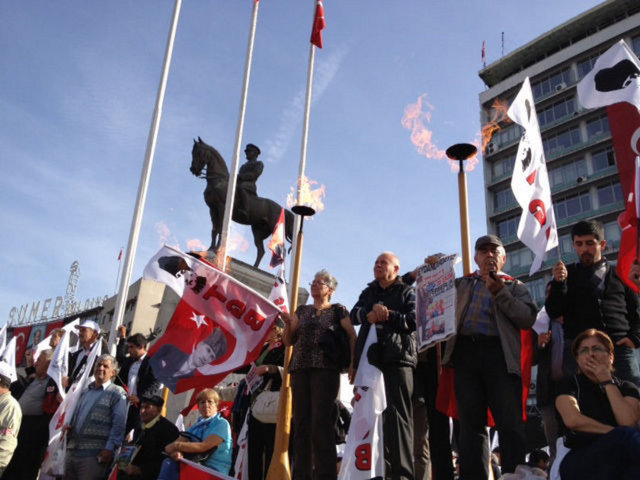 Polis Ulus Meydanı'nda toplanan ve yürümek isteyen bir gruba biber gazı ve tazyikli su ile müdahale etti.
