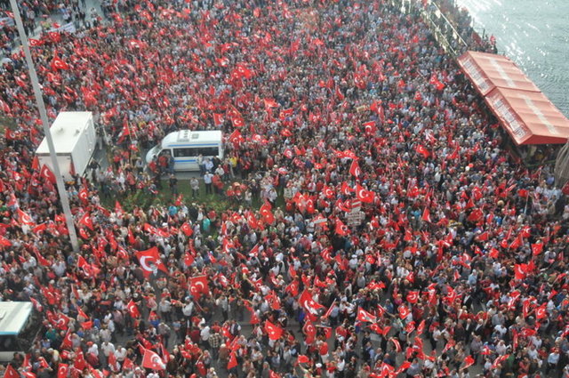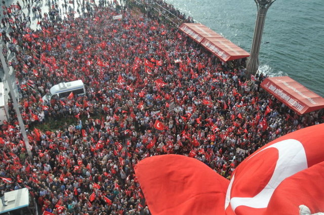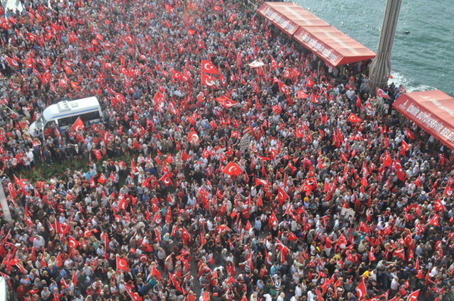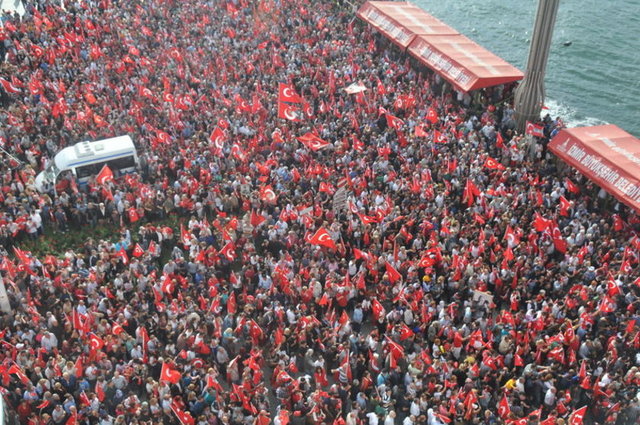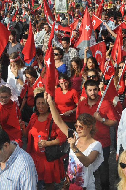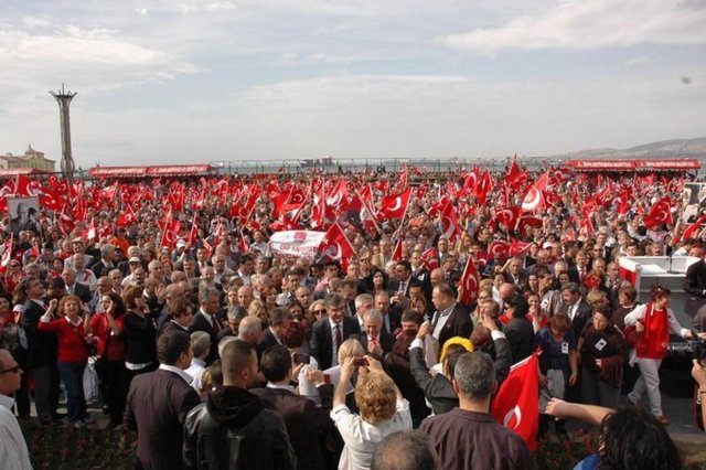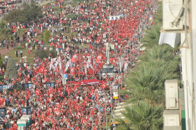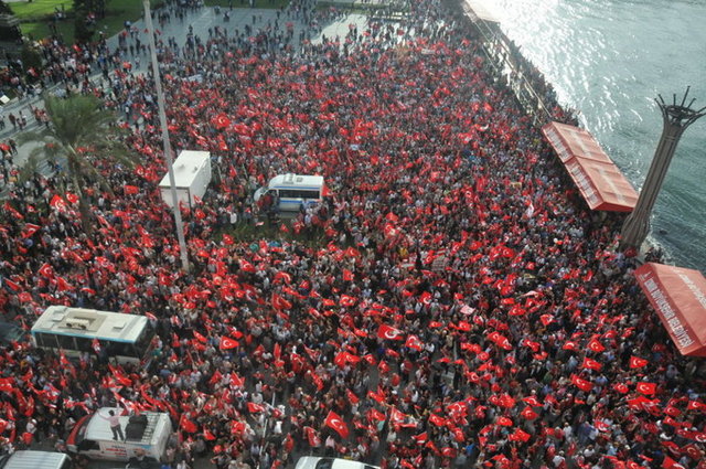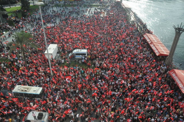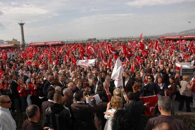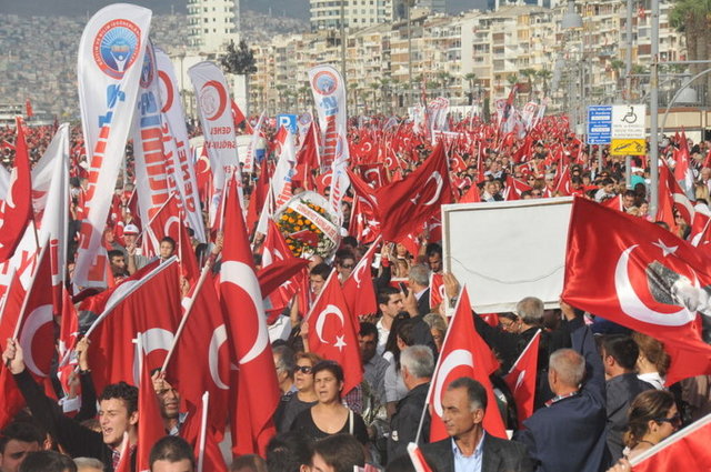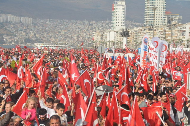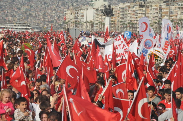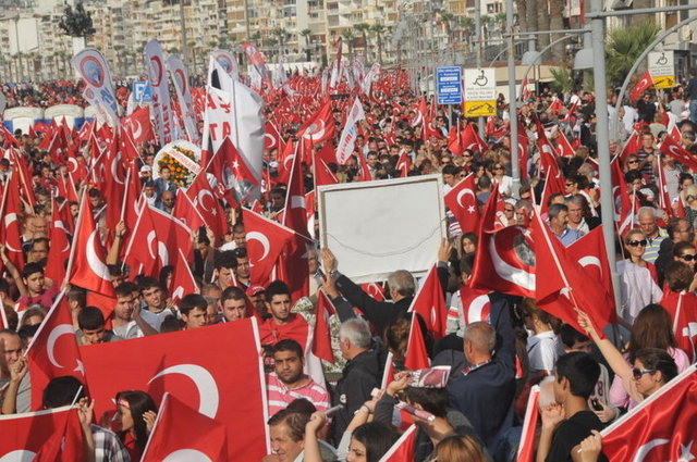 İzmir'de Cumhuriyet için Güç Birliği Platformu çatısı altında birleşen Atatürkçü Düşünce Derneği, Çağdaş Yaşamı Destekleme Derneği, Türk Tabipler Odası ile CHP, DSP, İşçi Partisi'nin de bulunduğu 70 sivil toplum örgütü ve siyasi parti tarafından Cumhuriyet Meydanı'nda düzenlenen yürüyüş, mitinge dönüştü.
