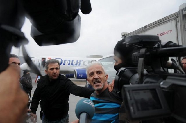 Özel harekat polisleri, ihbarı yapan yolcuyu uçakta gözaltına aldı. Uçaktan indirilen yolcu çoraplarına kadar didik didik arandı. Şüpheli polisler tarafından götürülürken, "PKK'lılar için ölüm orucu tutuluyor, şehitlerimiz için neden tutulmuyor? Bunun için yaptım" dedi.