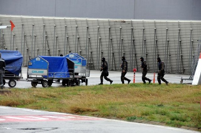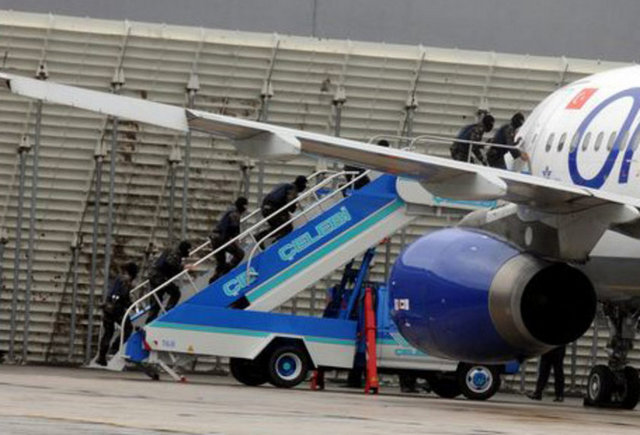 Özel harekat polisleri ve bomba uzmanları aramalarını sürdürürken, uçağın etrafı emniyet şeridiyle kapatıldı. Uçaktaki bagajların aranması için de uçağa X-ray cihazları getirildi.