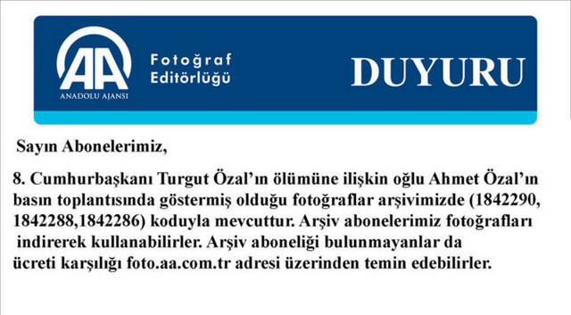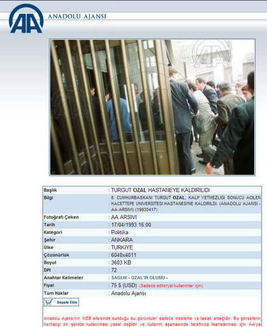Ahmet Özal'ın, düzenlediği basın toplantısında "Babamın fotoğrafı, yürüyerek hastaneye giriyor" dediği fotoğrafı ve 2 benzer kareyi Anadolu Ajansı, abonelerine yeniden servis etti. Özal'ın 'babam' dediği kişinin Özal olmadığı öne sürülürken, takım elbiseli bu kişinin Özal'ın sedyesini iten kişilerden biri olduğu ve bu kişinin de koruma polislerinden biri olabileceği ifade edildi. Fotoğraflarda, hastane kapısındaki kişilerin de, muhtemelen sedyede yatan bir kişiye doğru baktıkları dikkat çekiyor.