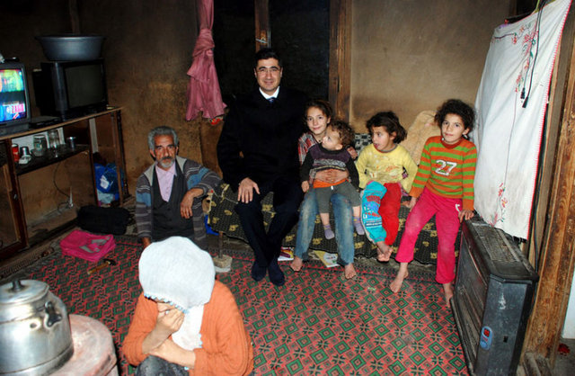 Banyosu, kapısı olmayan ve naylon pencereli barakada yaşayan 5 çocuklu aileye Kaymakam sahip çıktı