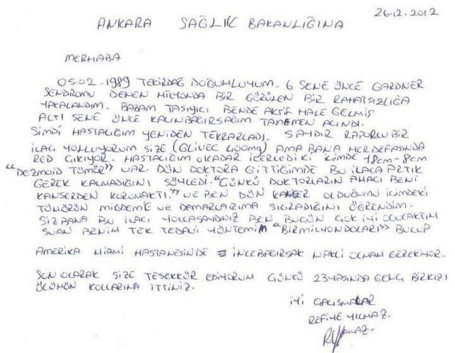 Tekirdağ'da yaşayan Refiye Yılmaz, 7 yıl önce yakalandığı Gardner Sendromu hastalığına karşı yaşam mücadelesi veriyor. Babasının genlerinde pasif (taşıyıcı) olan hastalığın kendisinde aktif hale gelmesiyle 16 yaşında kalın bağırsağı alınan genç kızın yaşabilmesi için şimdi de ince bağırsak nakli olması gerekiyor. Refiye'nin Amerika Miami Hastanesi'nde yapılacak nakille sağlığına tamamen kavuşabilmesi için 1 Milyon Dolar gerekiyor.