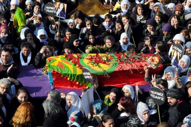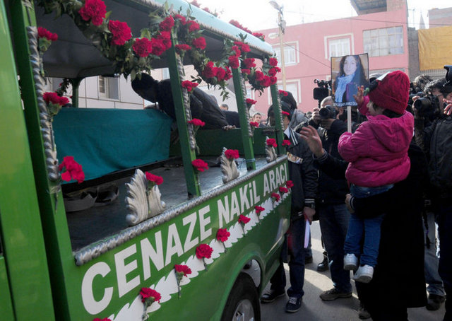 Törene katılanlar yası simgeleyen siyah elbiseler ile barışı simgeleyen beyaz kaşkol taktı. Fransa’da öldürülen 3 kadının posterlerinin taşındığı cenazede güvenlik güçlerinin törenin yapılacağı bölgeden uzakta beklemesi dikkati çekti.