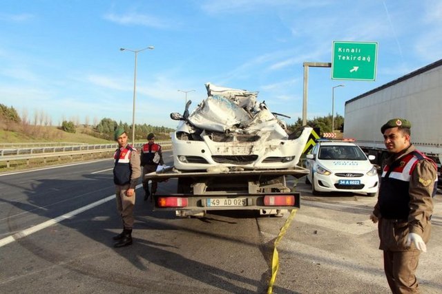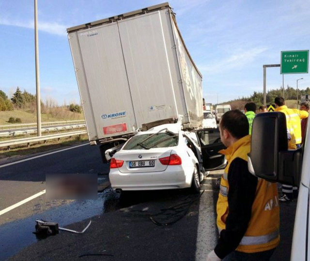 Silivri Tem Otoyolu Kınalı gişelerde geçtiğimiz günlerde meydana gelen trafik kazasında Mehmet Bulut (35) yönetimindeki 06 EBU 60 plakalı lüks otomobil, kontrolden çıkarak meşrubat yüklü Ahmet Köksal yönetimindeki 34 BY 2575 TIR'a arkadan çarpmıştı.