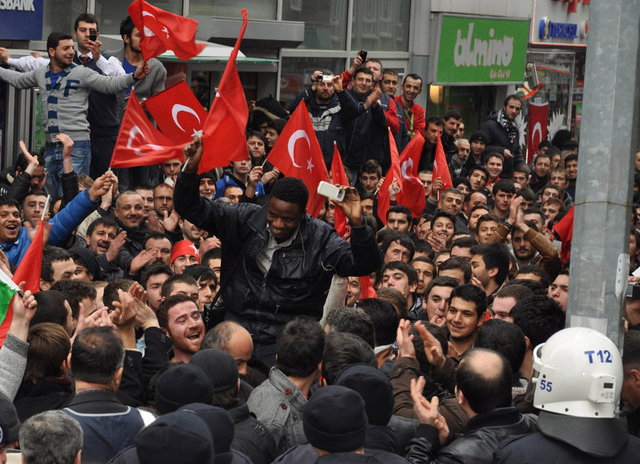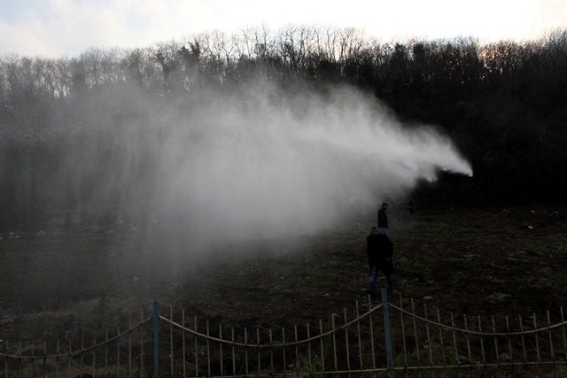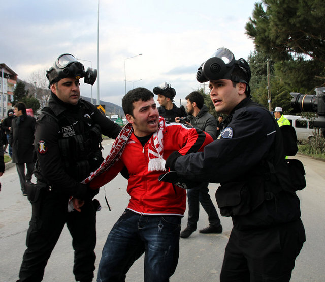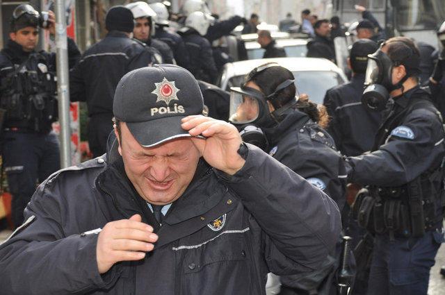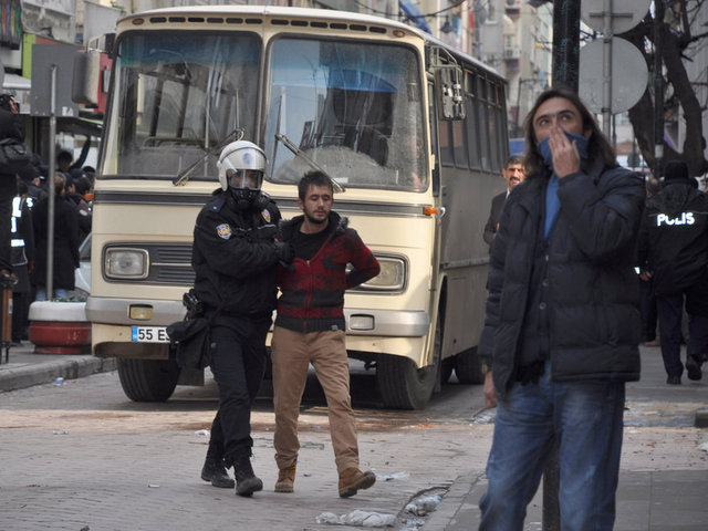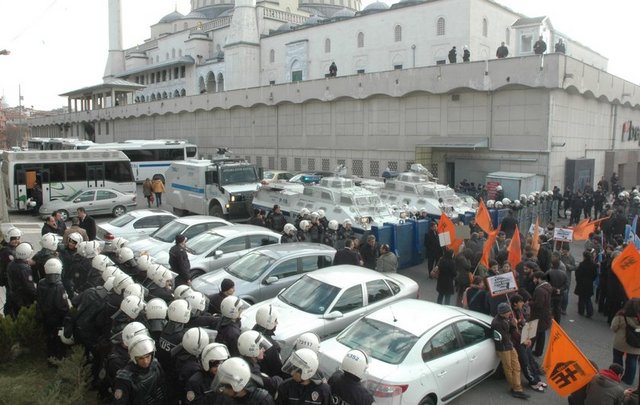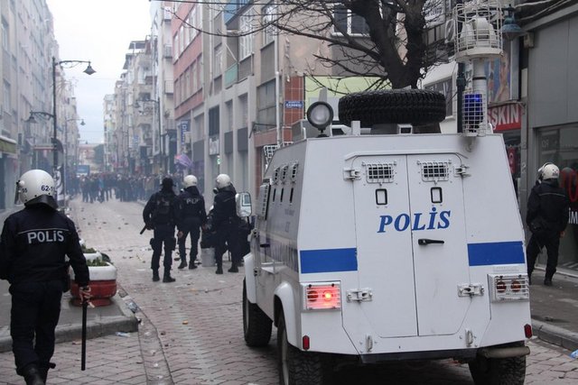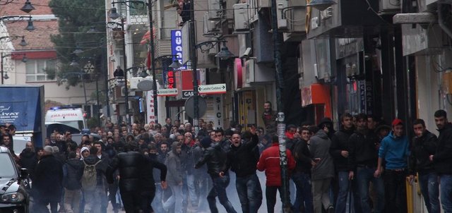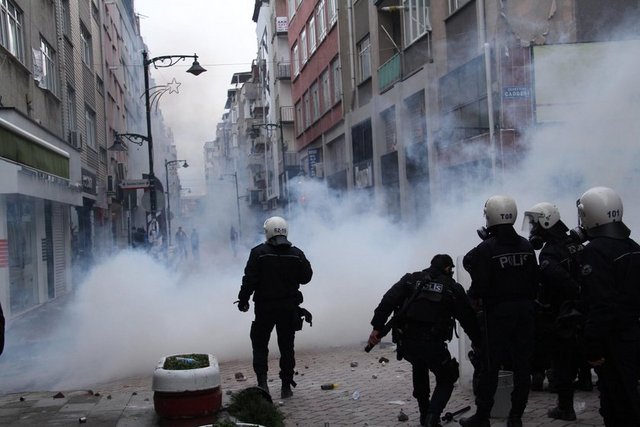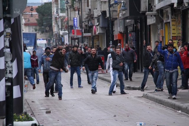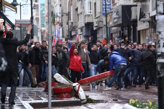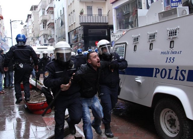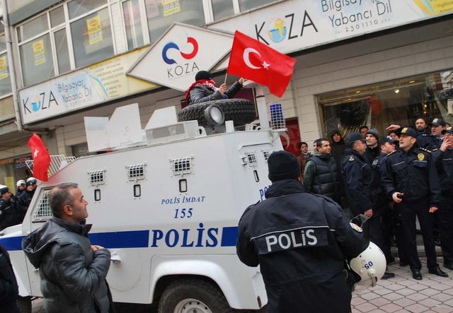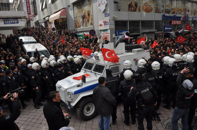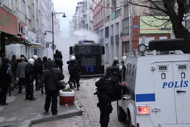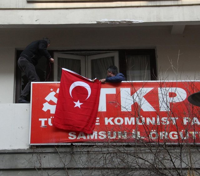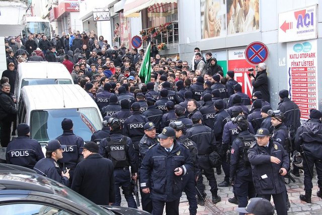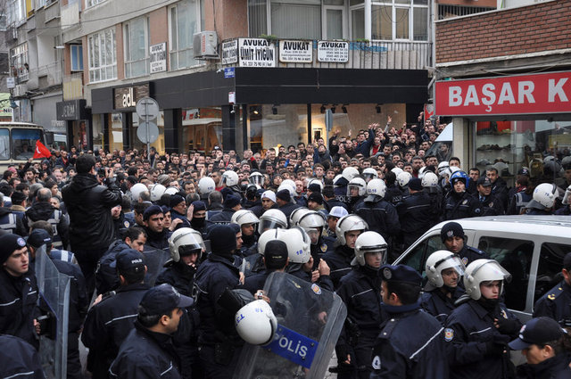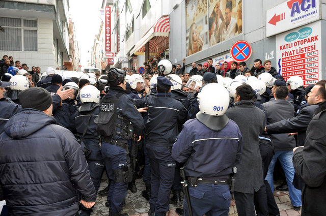 Geniş güvenlik önlemlerinin alındığı derneğin yanı sıra TKP, Halk Evleri ve Eşitlik ve Demokrasi Partisi’nin il teşkilatlarının da bulunduğu binaya girmek isteyen kalabalığa polisler biber gazı sıkarak müdahale etti. Göstericiler bu sırada taş atarak binanın camlarını kırdı. Bunun üzerine binanın çatısına çıkan 78’liler Dayanışma ve Araştırma Derneği, Halk Evleri, TKP ile Eşitlik ve Demokrasi Partisi üyeleri de aşağıdaki gruba, gelen taşları attı.