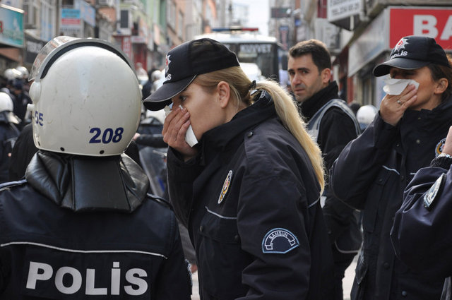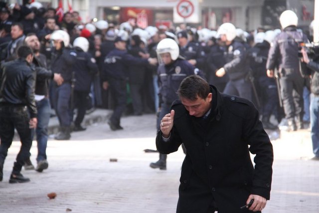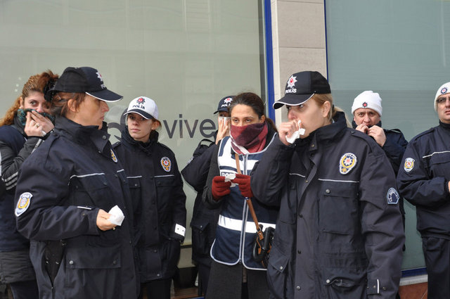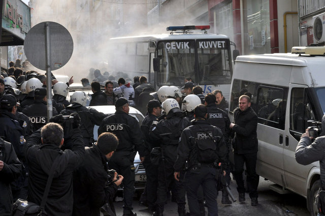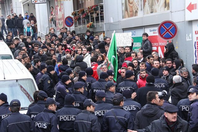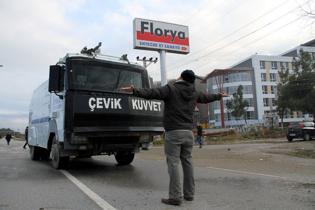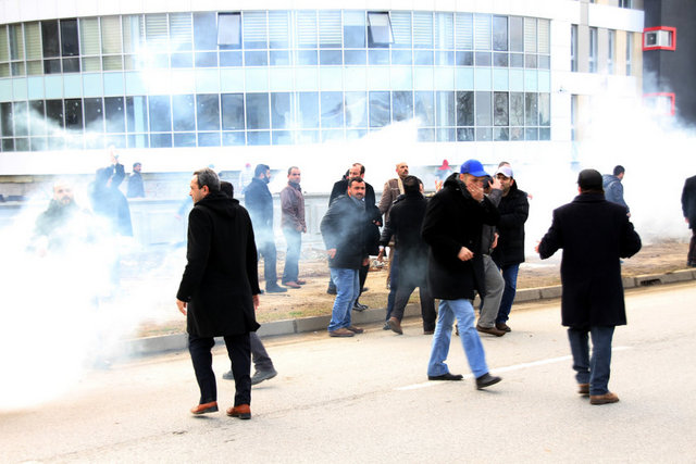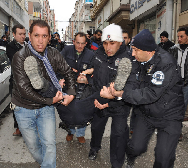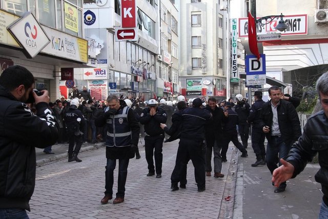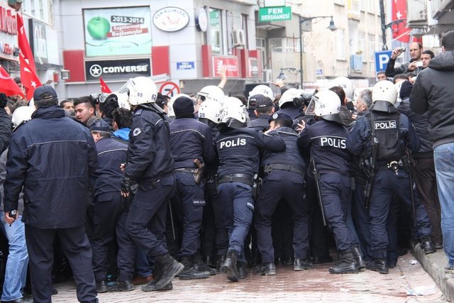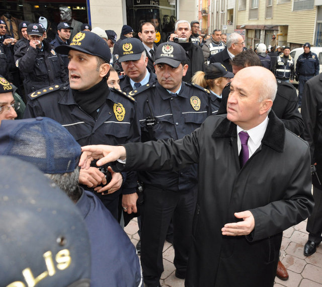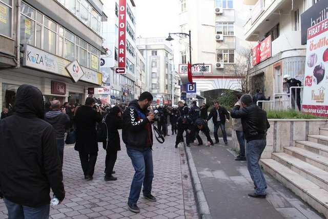 Polis, binaya girerek TKP tabelasına bayrak asan kişileri güçlükle dışarı çıkardı. Çevreden ayrılmamakta direnen göstericiler sloganlar atarak BDP heyetini protesto etti.