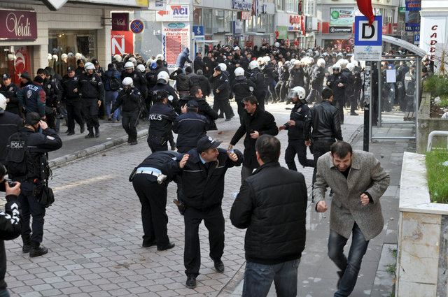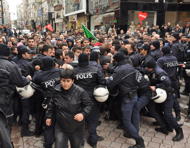 Samsun’da BDP’li vekillerin ziyaret etmeyi planladığı 78’liler Dayanışma ve Araştırma Derneği’nin bulunduğu binanın önünde toplanan yaklaşık 1000 kişilik grup ile onlara engel olmak isteyen polisler karşı karşıya geldi.