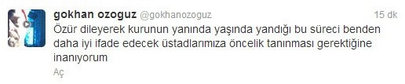 Görüşmede Gökhan Özoğuz'un da yer alacağı açıklanmıştı. Ancak Gökhan Özoğuz görüşmeye katılmayacağını Twitter hesabından duyurdu: "Özür dileyerek kurunun yanında yaşın da yandığı bu süreci benden daha iyi ifade edecek üstadlarımıza öncelik tanınması gerektiğine inanıyorum"