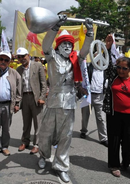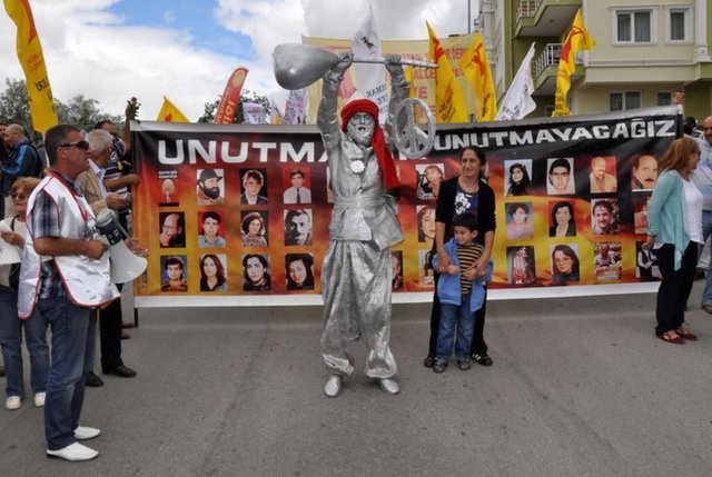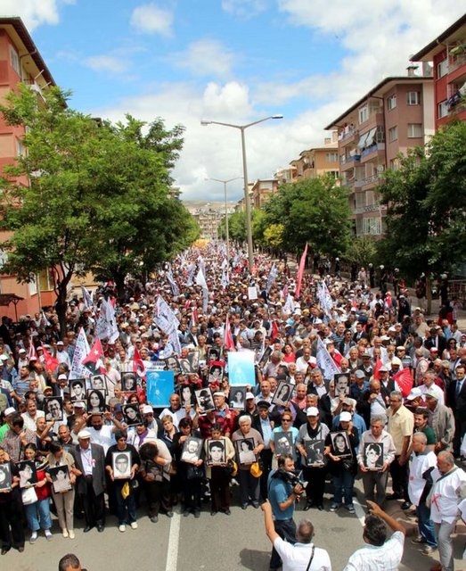 Hüzünlü olduğu gözlenen aileler ellerinde kaybettikleri yakınlarının fotoğrafları ile otel önüne kadar yürüdü. Yürüyüş sırasında kıyafetleri, vücudu ve sazı metal rengine boyanmış ve sazına barış logosu asılı olan temsili Pir Sultan Abdal da dikkati çekti. Yürüyüş ve anma etkinliği boyunca kent üzerinde bir polis helikopteri görev yaparak, anma törenlerini adım adım izledi.