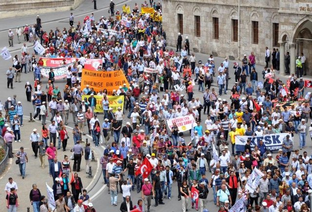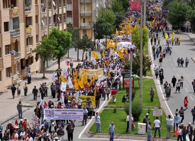 Yürüyüş sırasında hükümet aleyhine sloganlar atan grup, Gezi olayları ile ilgili de tepkilerini sürdürerek olayda yaşamını yitiren Ethem Sarısülük için sloganlar attı. Ellerinde çeşitli döviz ve pankartlar taşılan kalabalık, Madımak'ın müze olması talebini yineledi.