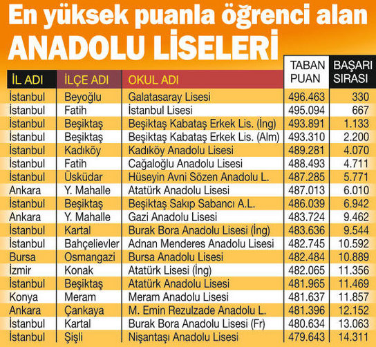 Bu yıl SBS’nin zorluğu puanlara yansıdı ve öğrenciler geçen yıla göre daha düşük puan aldılar. Bu nedenle de geçen yıla göre daha düşük puanlarla Anadolu ve fen liselerine yerleşecekler. 460 ile 470 arasında öğrenci alan okullarda 10 puana, 300 ile 350 arasında puanlarda yerleştirme yapılan liselerde ise 30-35 puana kadar düşüşler olacak