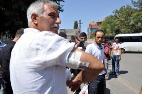 Ceylanpınar ilçesinde, Suriye sınırına yakın bölgelerde yaşayan vatandaşlar, zorunlu olmadıkça dışarı çıkmamaları konusunda uyarılıyor. Evinde oturan Cumhuriyet Mahallesi Muhtarı Nezir Atilla, isabet eden kurşunla sağ kolundan yaralandı.