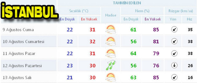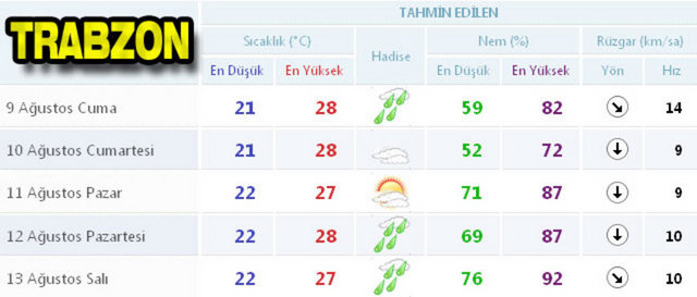 Yapılan son değerlendirmelere göre; Orta ve Doğu Karadeniz kıyıları ile öğle saatlerinden sonra Artvin, Ardahan ve Kars çevrelerinin sağanak ve gök gürültülü sağanak yağışlı, diğer yerlerin az bulutlu ve açık geçeceği tahmin ediliyor.