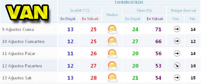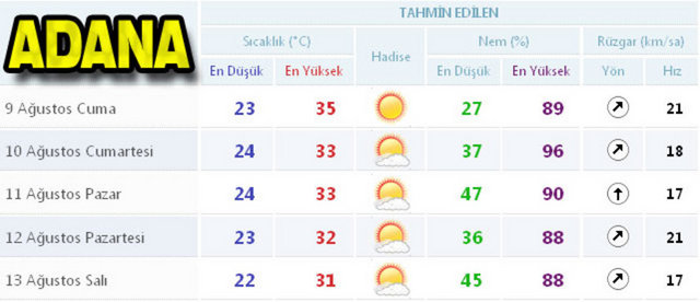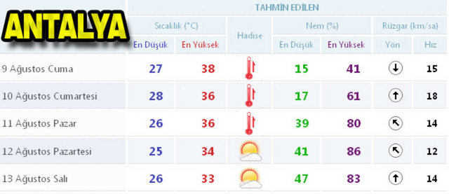 Meteoroloji Genel Müdürlüğü'nden alınan tahminlere göre, hava sıcaklığının yurt genelinde mevsim normalleri civarında seyredeceği tahmin ediliyor. Rüzgar, genellikle kuzey, Doğu Akdeniz'de güneybatı yönlerden hafif ara sıra orta kuvvette, Marmara ve Kıyı Ege ile zamanla doğu kesimlerde yer yer kuvvetli olarak (30-50 km/s) esmesi bekleniyor.