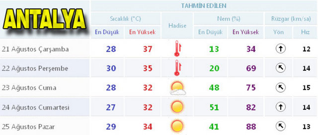 Meteoroloji Genel Müdürlüğü'nden alınan tahminlere göre, hava sıcaklığı, doğu kesimlerde 1 ila 3 derece azalacağı, diğer yerlerde önemli bir değişiklik olmayacağı bekleniyor. Rüzgar, genellikle kuzey ve kuzeydoğu yönlerden hafif ara sıra orta kuvvette, Marmara ve Kıyı Ege'de kuvvetli olarak (30-60 km/s)